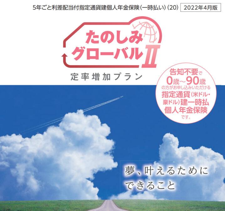 正式名称:5年ごと利差配当付選択通貨建個人年金保険(一時払い)(20)