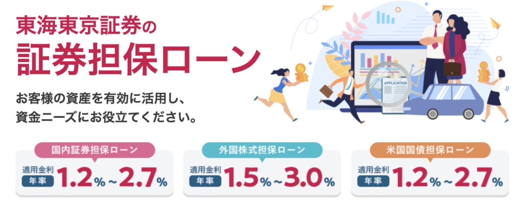 - 「証券担保ローン」は、有価証券を担保にして証券会社などが資金を融資するサービス