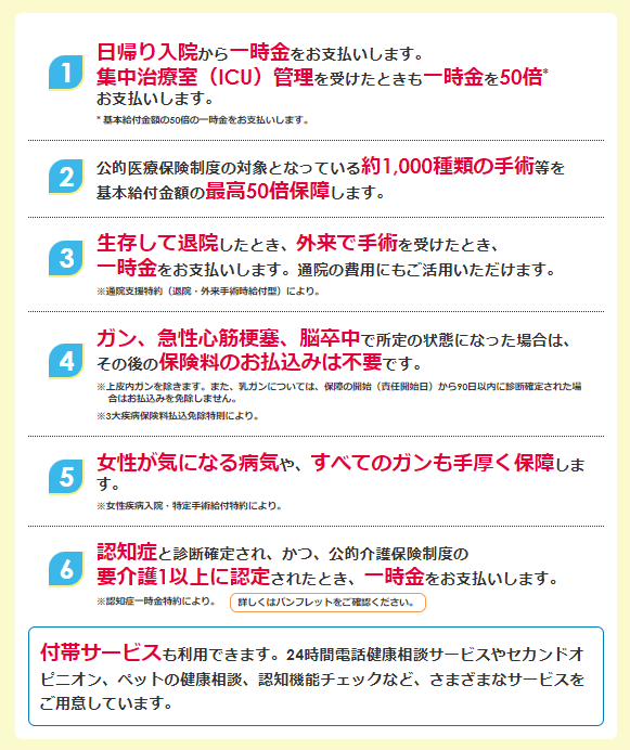 主に、短期入院の保障に主眼を置いた医療保険です。