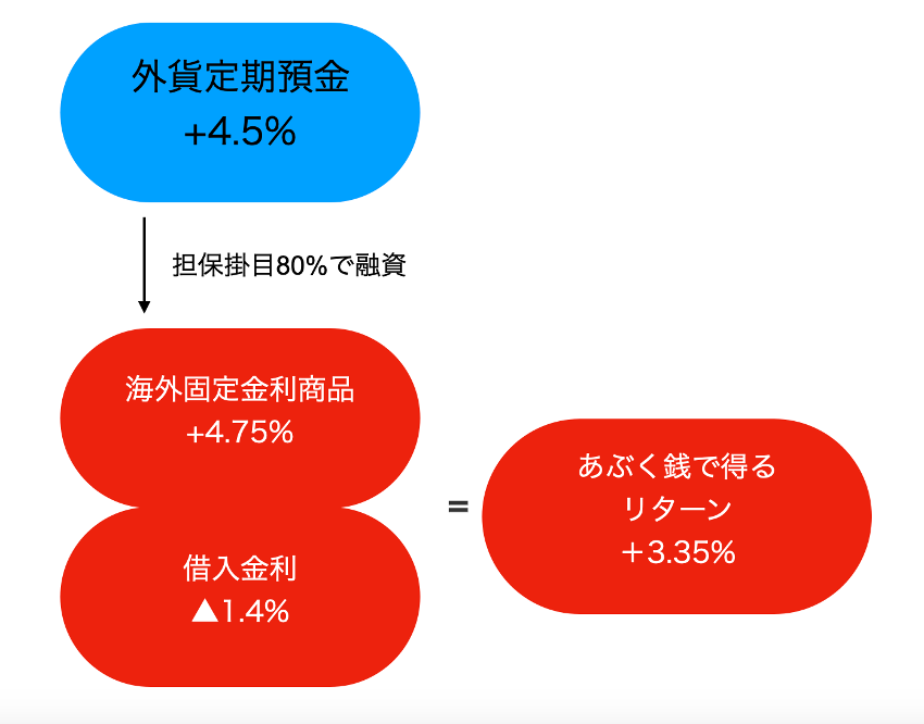 自分のお金を預けて4.5%儲かり、金融機関からお金を借りてその資金で運用すればさらにも儲かる。