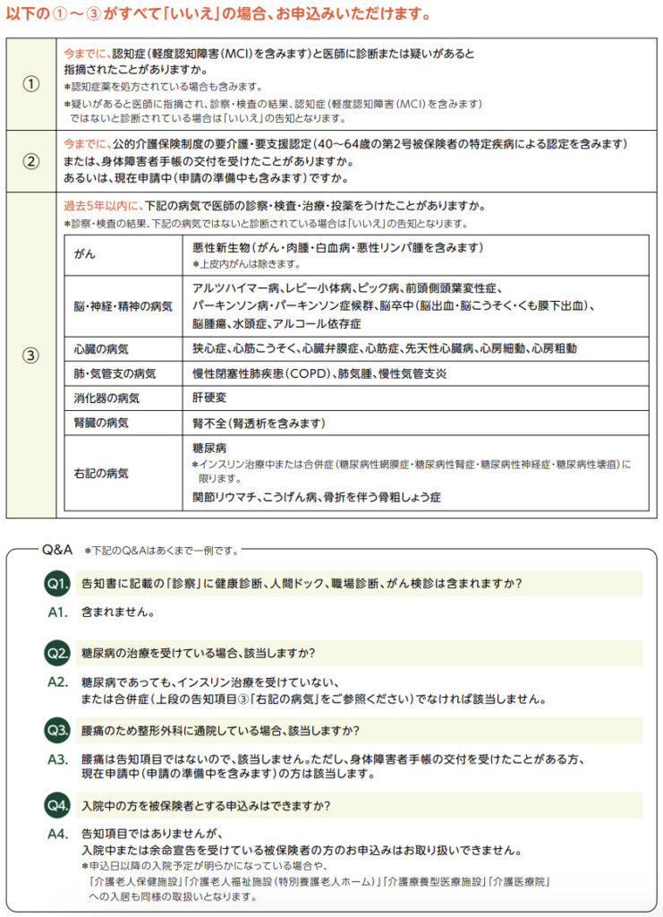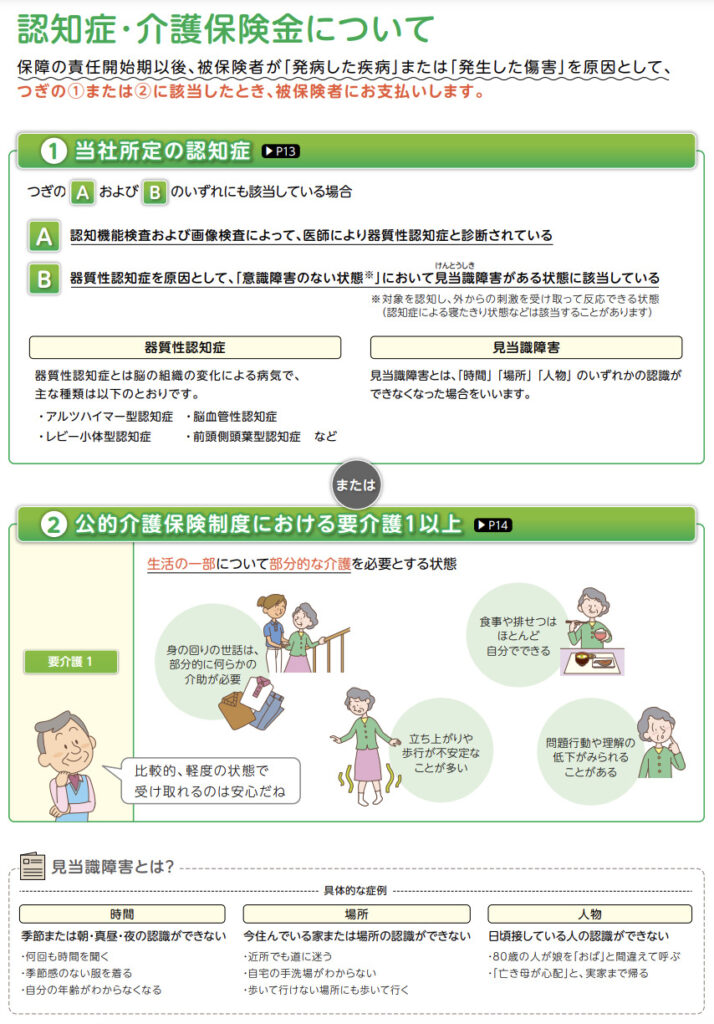 下記の条件に該当したときに認知症・介護保険金(基本保険金額)を受け取れます。