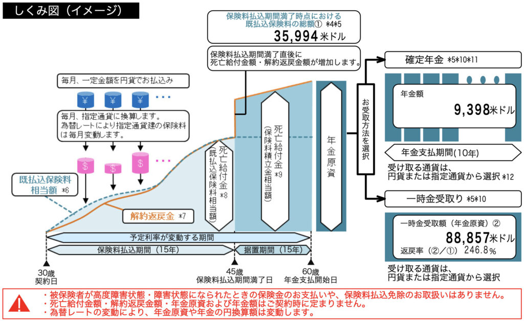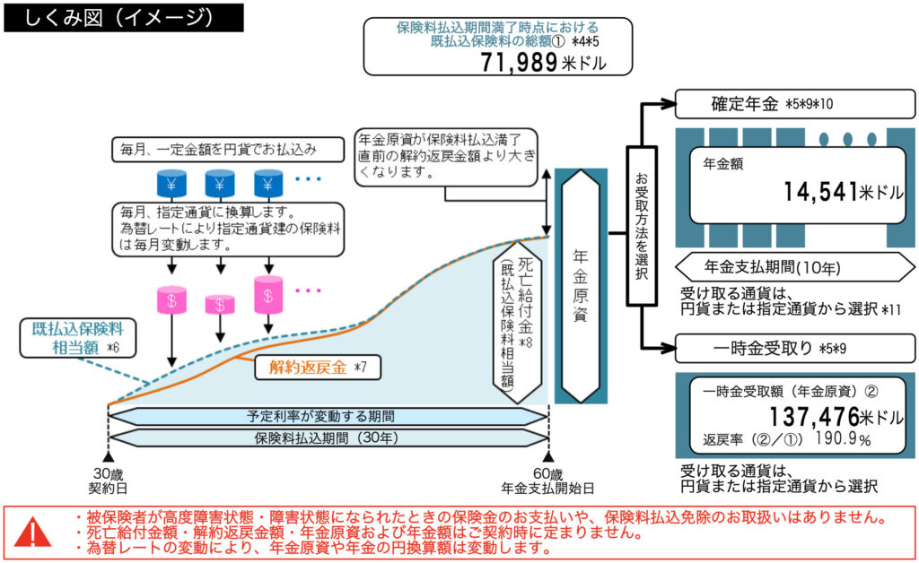 正式名称:予定利率変動型5年ごと利差配当付指定通貨建個人年金保険