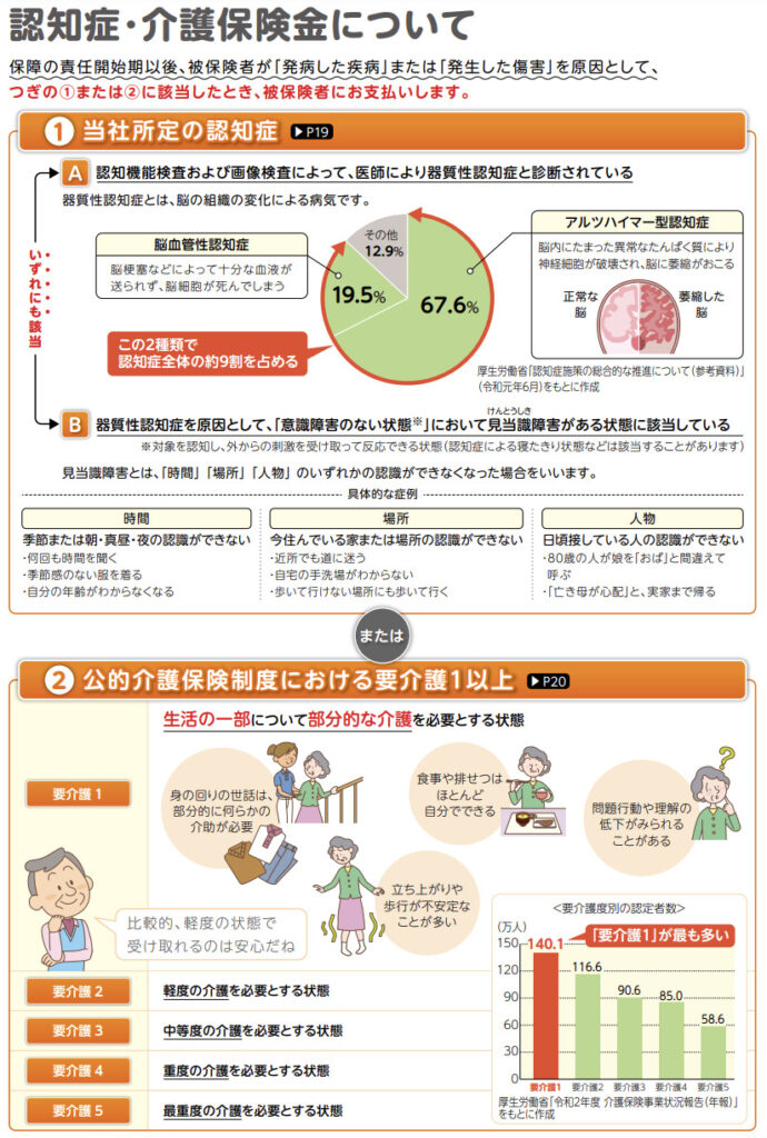 告知:死亡保障プラン(なし)、認知症・介護プラン(あり/なし)