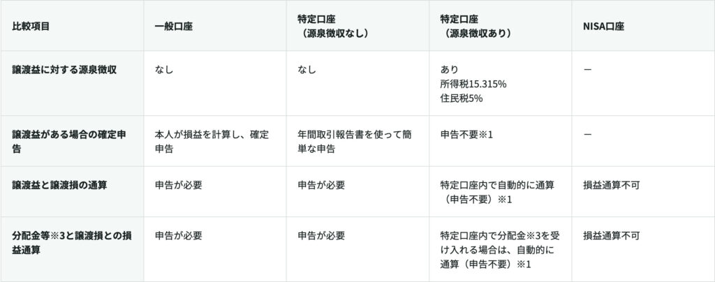 証券会社の口座には、一般口座、特定口座(源泉徴収あり・なし)、NISA口座の4種類があります。