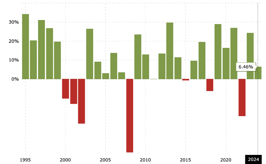 なお、S&P500インデックスは、今年(2024年)もすでに6.46%のプラスリターンとなっております。