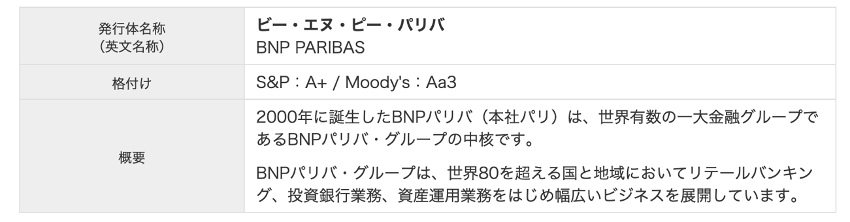 なお、BNPパリバは、欧州を本拠とする世界有数の金融グループで、財務内容の健全性などから世界の主要格付機関から高い評価を得ています。