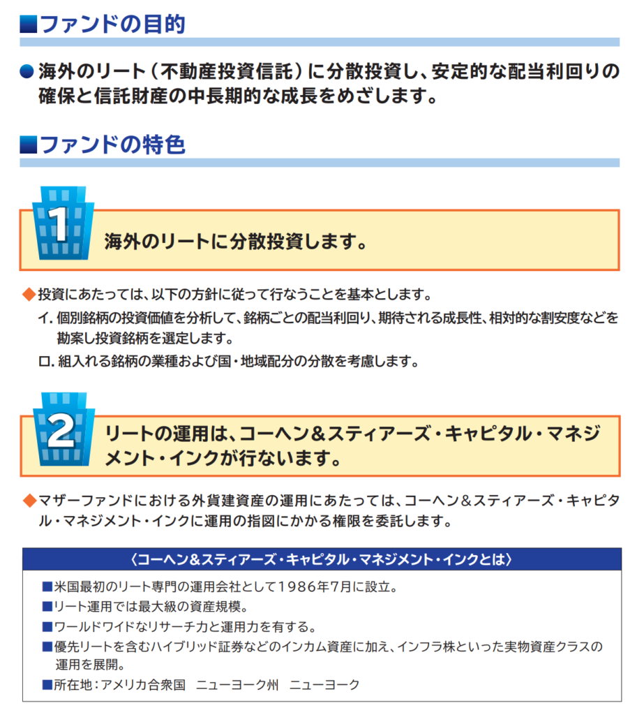 運用は、コーヘン&スティアーズ・キャピタル・マネジメント・インクが行います。