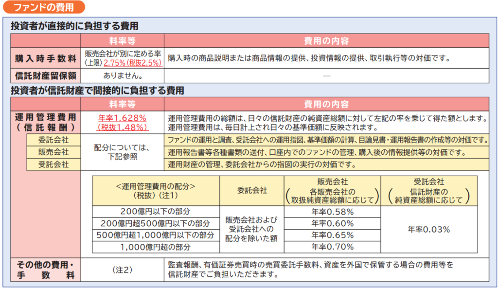 購入時手数料は2.75%、毎年の管理費用は年率1.628%、その他手数料もかかります。