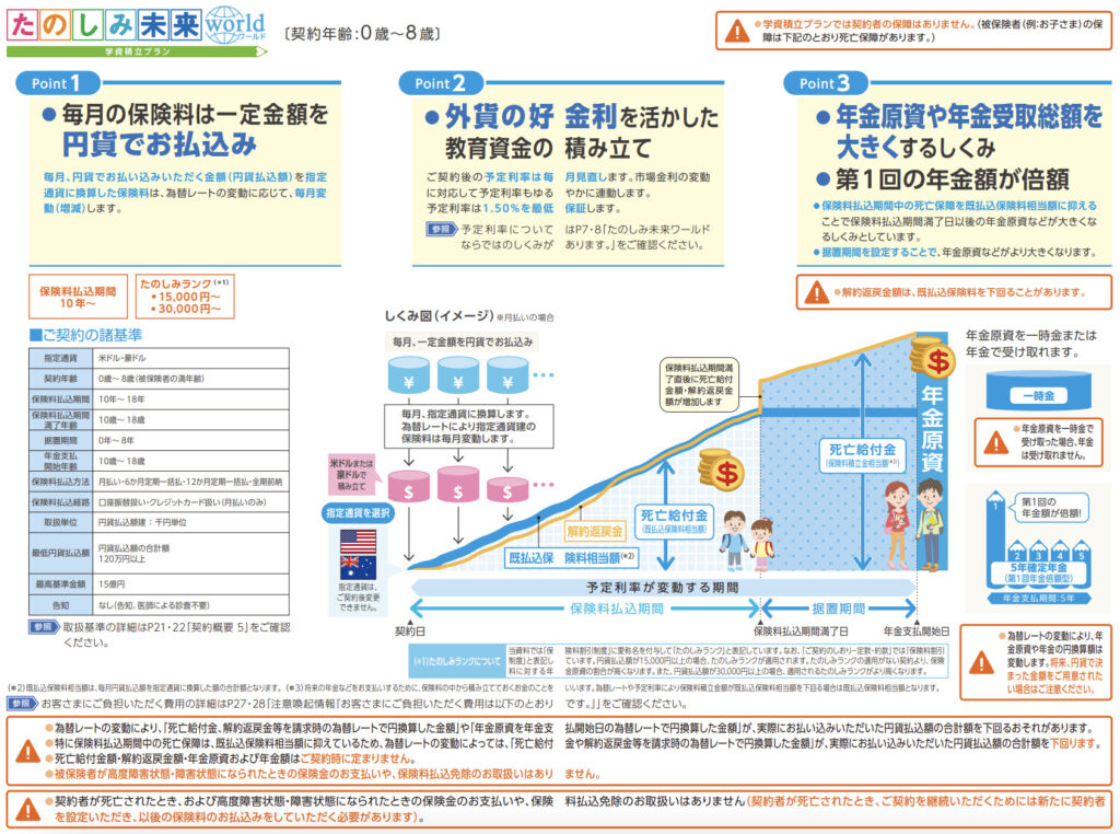 商品名:たのしみ未来ワールド(学資積立プラン)