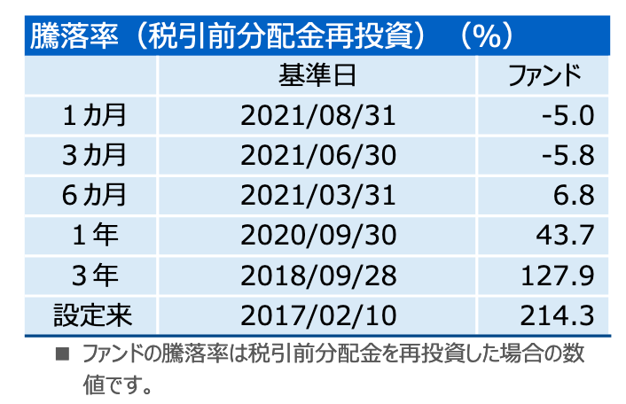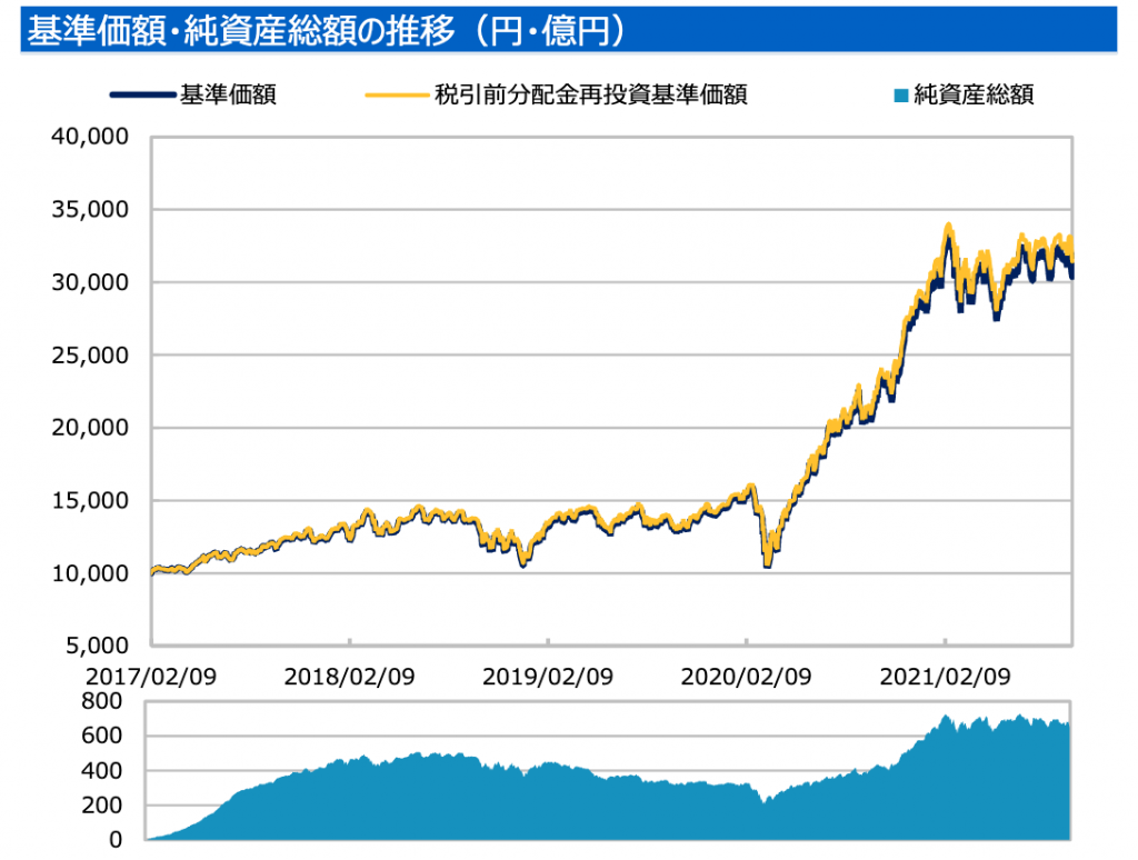 このファンドも設定から5年足らずで基準価額は4倍超になっておりますが、既に高値圏になっているという可能性もありますので、注意が必要です。