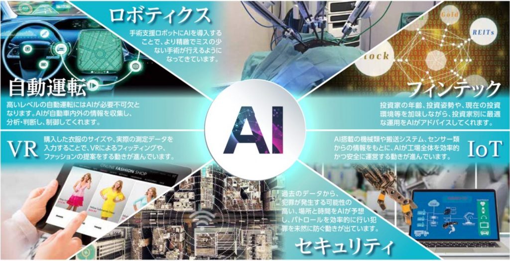 最近は、IoTやロボティクス、フィンテック、自動運転などの話題も耳にするようになってきていると思いますが、これらもそれぞれ単体ではなく、AIを活用することで開発スピードが早まり、我々の生活にもっと身近な存在になってきています。