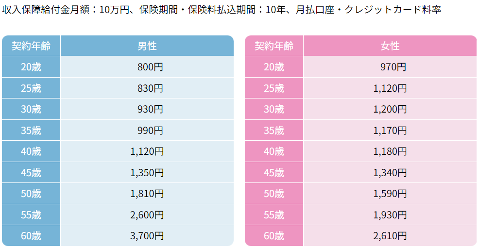 たとえば、30歳男性が保険期間:10年・収入保障給付金月額:10万円のプランに加入したとします。その場合、万一の場合に受け取れる金額は60万円(最大10回)です。一方、10年間で支払う保険料は「930円×12か月×10年=111,600円」です。また、40歳を迎えた際、保障を続けたい場合はその時点の保険料で更新しなければなりません。さらに、3大疾病の罹患率などは、女性特有のがんを除き一般的に年齢が上がるにつれて高くなります。そのため、年齢が上がるにつれて、保障額を減らさざるを得ないケースが出てくるかもしれません。