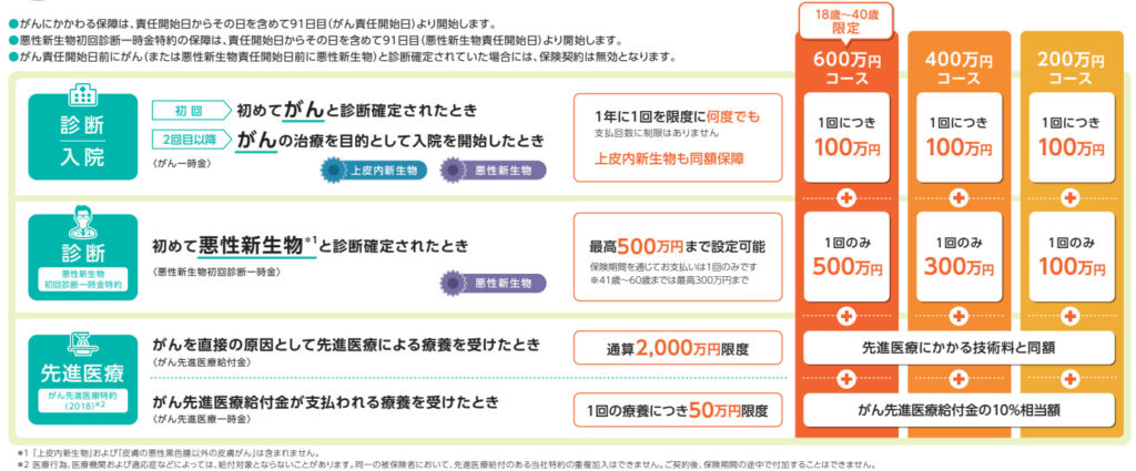 • 正式名称:無配当 無解約払戻金型一時金方式がん保険・悪性新生物初回診断一時金特約・がん先進医療特約(2018)