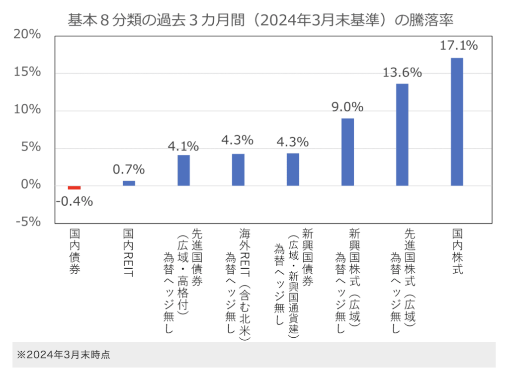 国内株式の過去3ヶ月の騰落率を見ると他の資産クラスに比べて一番リターンが高いようですが、「国内株高配当型投信」のリターンも良いのでしょうか。