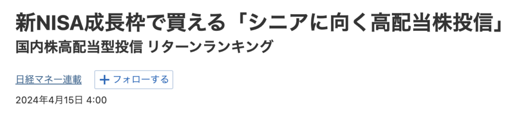 今回、取り上げた日本経済新聞の記事にも、シニア世代は分配金を生活費に充てるニーズが高まるので、定期的に分配金を得られる商品を中心にした運用が望ましいとの見解が示されておりましたね。