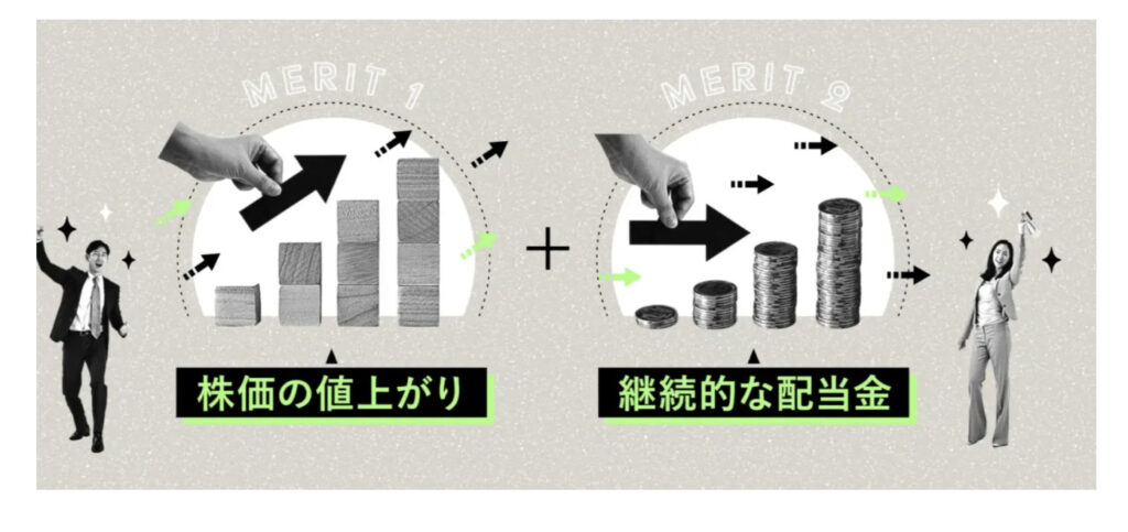 また、株価の値上がりも期待できますから、2つのメリットがありますね。