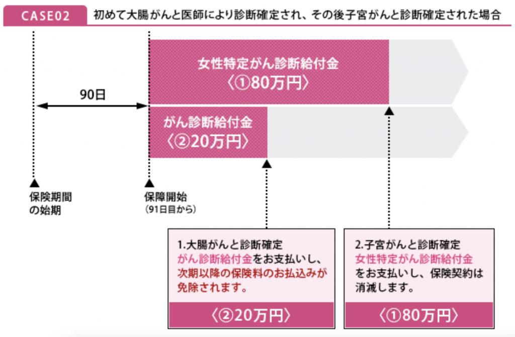女性特定がんと診断確定したときに80万円受け取れます(1回限り)。