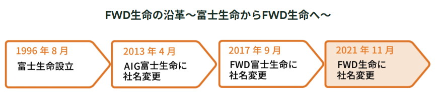 FWD生命保険株式会社は日本の生命保険会社です。現在は、香港のFWDグループの完全子会社になっています。2017年4月までAIGグループに属していましたが、AIGが生命保険会社FWDに全株式を売却し日本から撤退したことにより、FWD富士生命に社名を変更。その後、経営の悪化により2021年に再度社名変更をし、現在のFWD生命に至ります。以来、コスパの良い人気商品を発売するなどして、健闘しています。