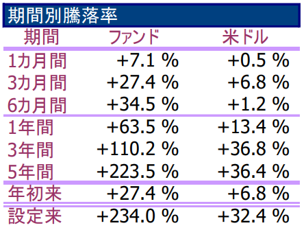 やっぱりそうですよね。中々着眼点がよくて良いファンドな気がしてきました。騰落率はどうでしょうか。