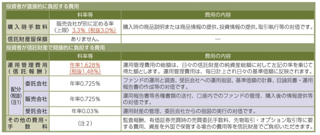 購入時手数料は3.3%、毎年の管理費用は年率1.628%、その他手数料もかかります。
