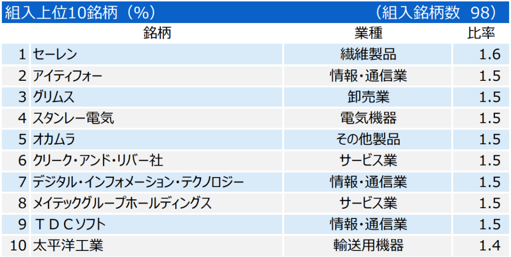 中小型株だけあってあまり有名な企業は含まれていませんね。