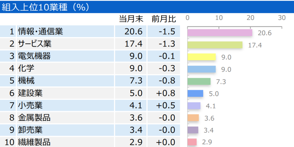 組み入れ上位の業種を見ると、一般的にあまり利益率が高くない業種も入っているので気になりますね。