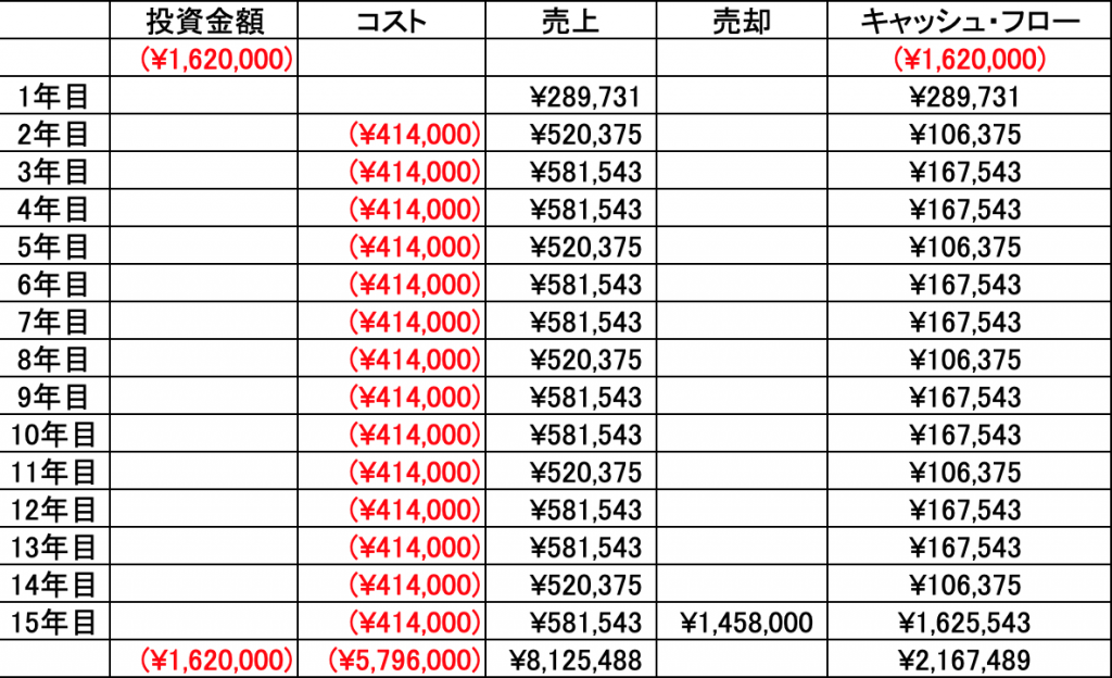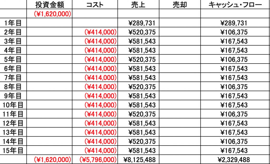 今回は、ここで止めておきますが、上のシュミレーションを利用して、IRR(内部収益率)を求めることもでき、それを投資指標として、他の投資と比較するのも良いと思います。