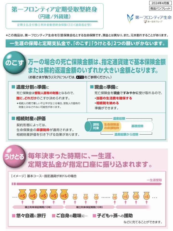 商品名:第一フロンティア定期受取型終身(円建/外貨建)