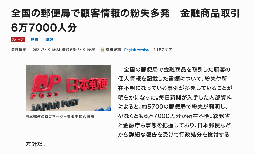 2020年頃、ゆうちょ銀行の顧客情報が漏洩する事件が発生しました。個人情報の管理が杜撰であったことが明るみに出ました。