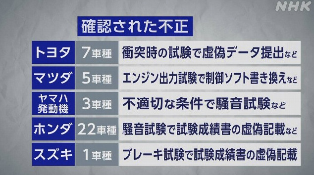 - 昨年から続く自動車不正、すべてのメーカーでデータ改ざんなどが見つかる