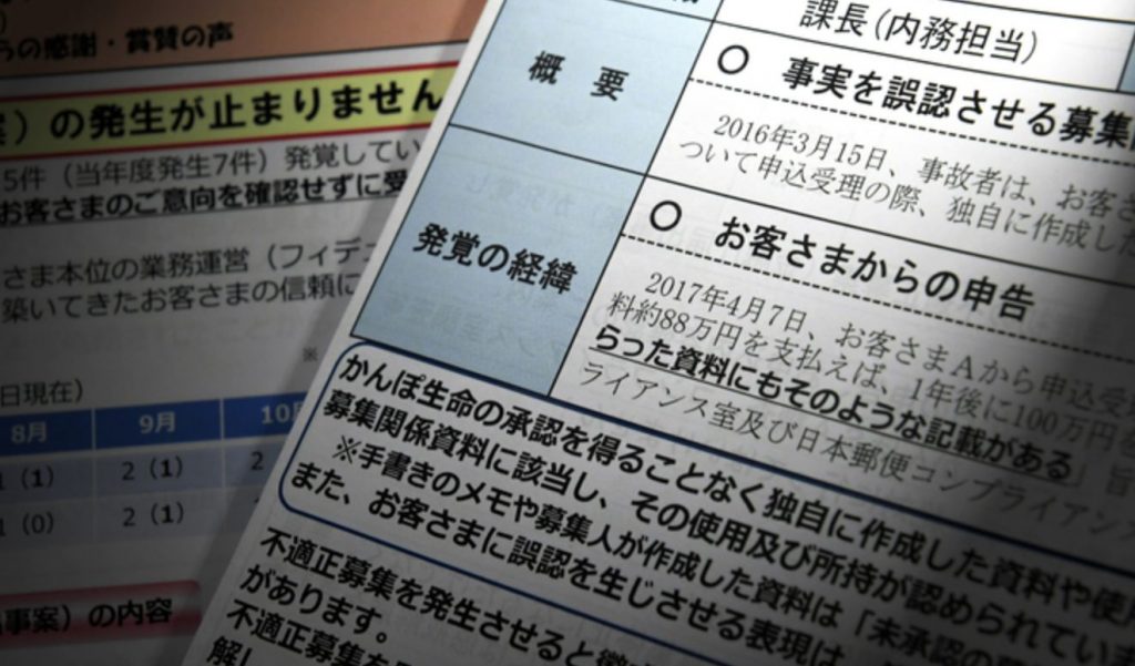 2018年4月24日のNHKのクローズアップ現在+でかんぽ生命が不正契約を行っていると報道した。