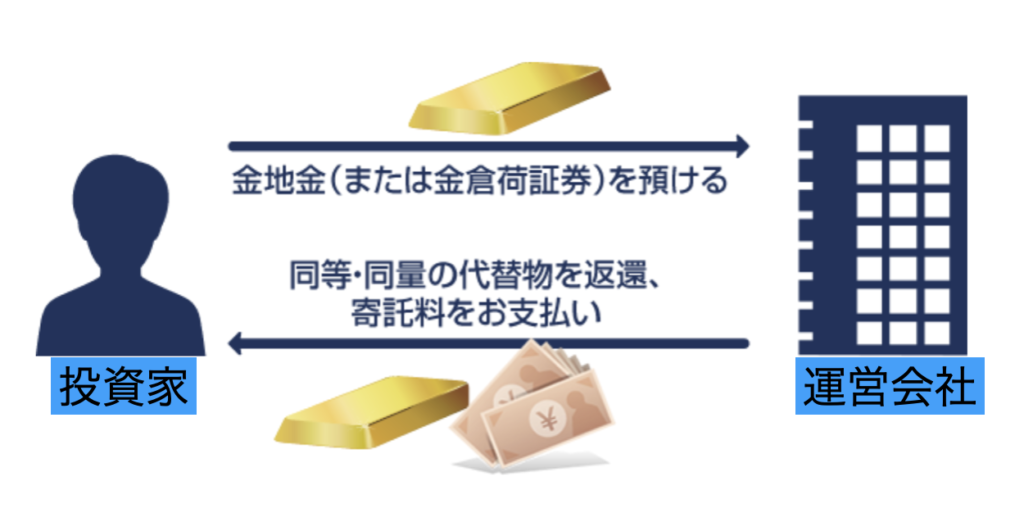 なお、金の保管方法としては「特定保管(混蔵寄託)」と「消費寄託」の2通りあり、運営会社によって異なります。