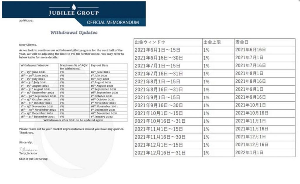 2020年11月17日あたりからジュビリーエースの業務停止、出金停止が起きたそうですが、なぜ起きたのでしょうか?