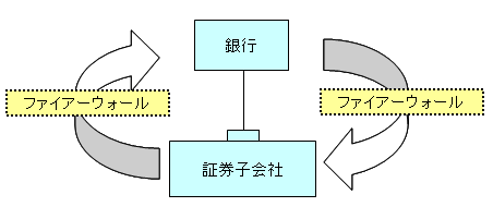 元々「防火壁」を意味する言葉です。あらかじめ設定しておいたルールに従って、通してはいけないデータを止める機能をいいます。金融機関はそういった規制が元々かけられています。