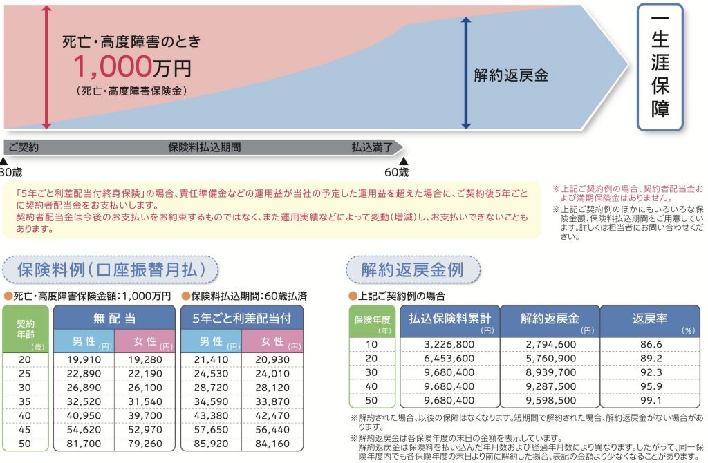 配当付きタイプも選べる終身保険