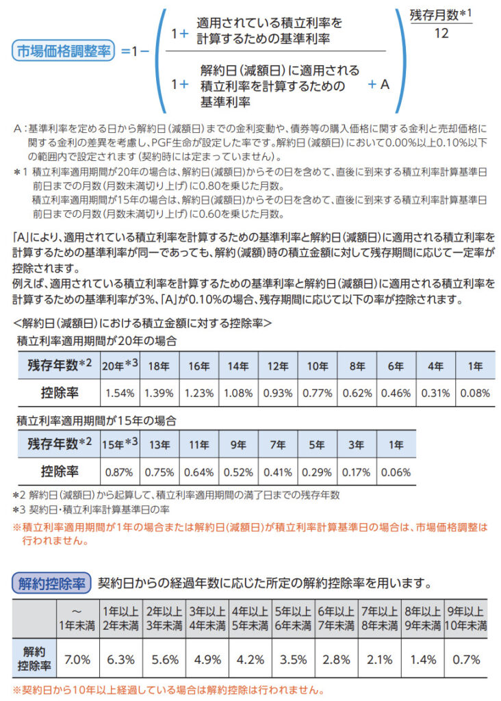 積立利率計算基準日以外に解約や減額をする場合に掛かる費用