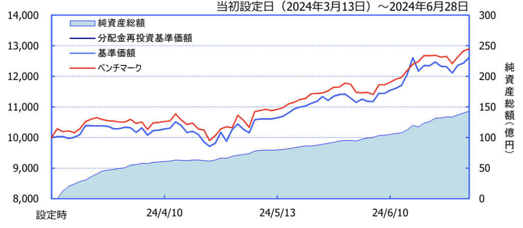 このファンドは2024年3月13日に設定されたばかりですから、まだそれほど実績があるわけではありません。