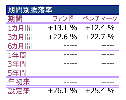しかしながら、設定来3ヶ月で+26.1%と大きなリターンをあげております。