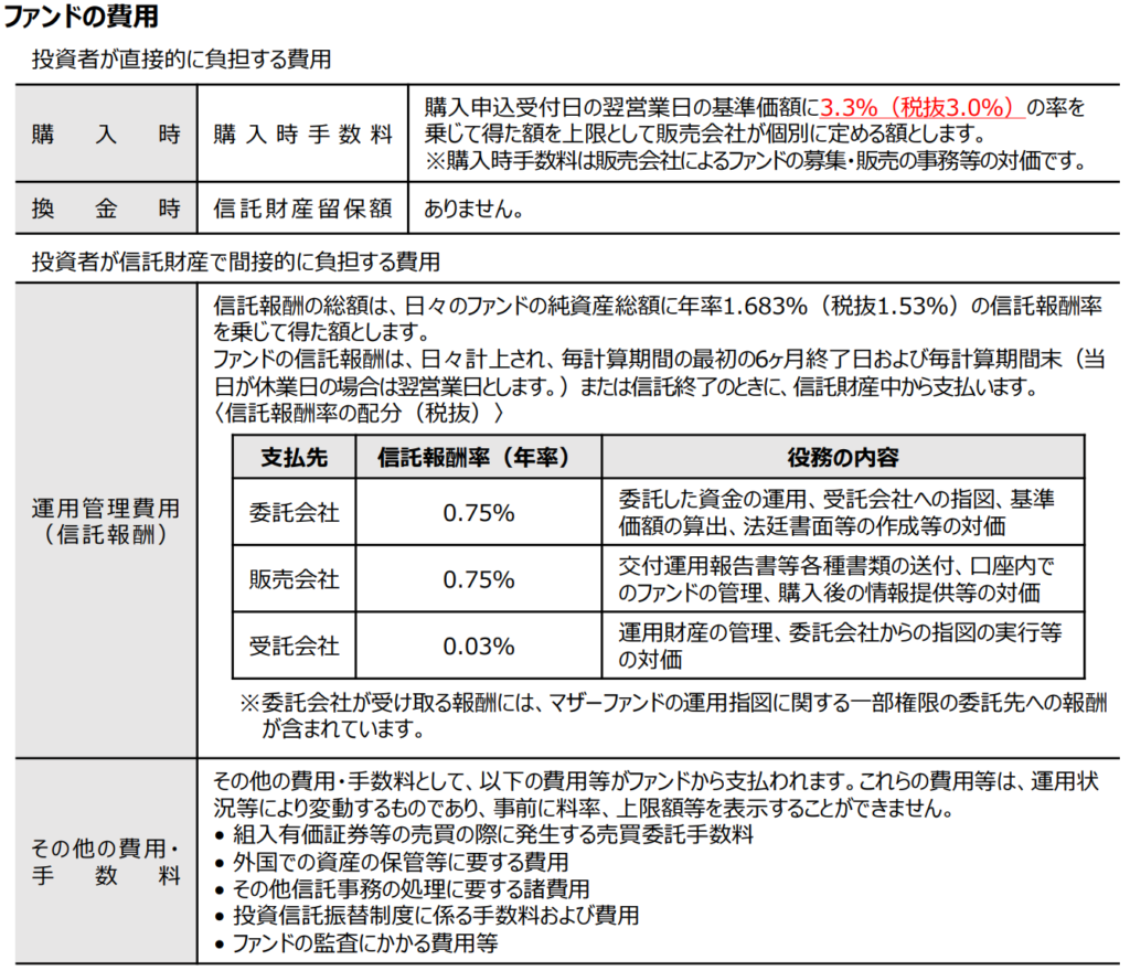 購入手数料は3.3%、毎年の管理費用は年率1.683%、その他手数料もかかります。