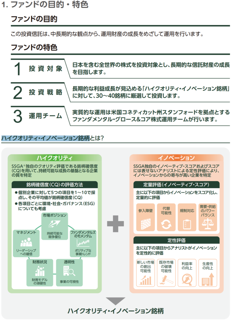 今回は、日本を含む全世界のハイクオリティ・イノベーション銘柄に投資するステート・ストリート・グローバル・アドバイザーズ「ステート・ストリート世界厳選成長株ファンド」について解説します。