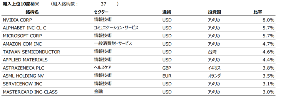 そうですね。次で投資先、組み入れ銘柄を見て行きましょう。