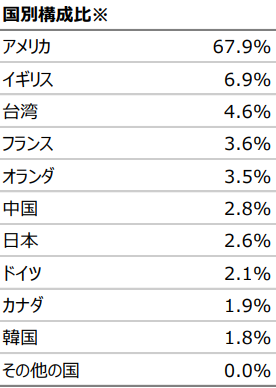 米国株が70%弱と全世界株(オルカン)とほぼ同等の組み入れ比率になっていますね。