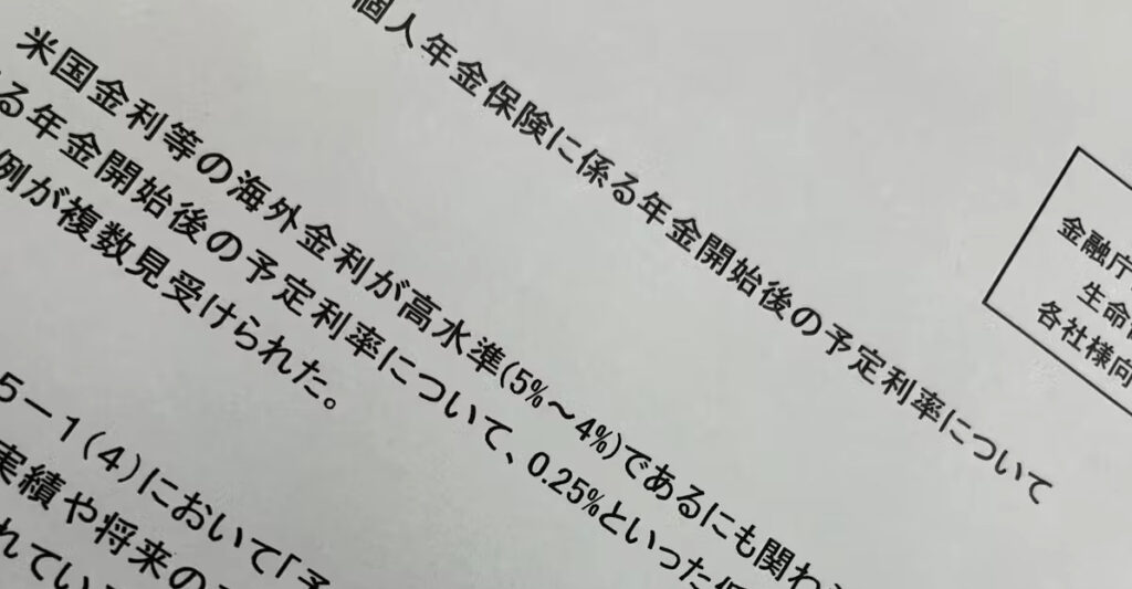 そうですね。年金開始後の予定利率が運用実態とかけ離れている場合、金融庁は利率水準の妥当性を見直すよう生保側に要請しているそうです。