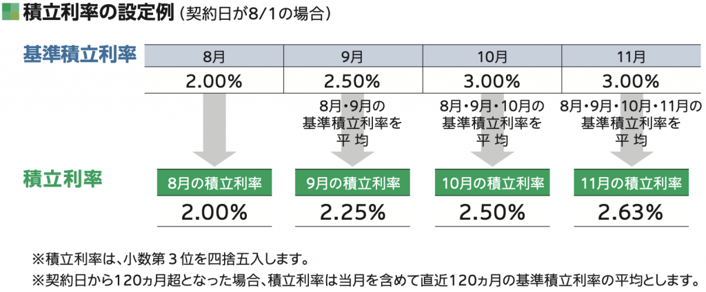 - 基準積立利率は毎月変動