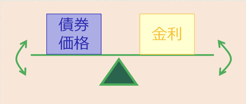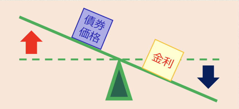 金利が上がると債券価格は下がり、金利が下がると債券価格は上がる