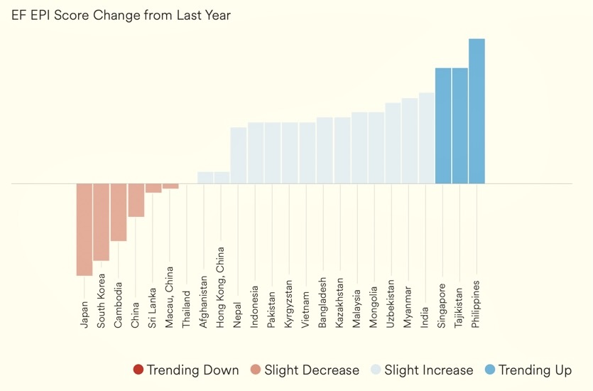 私立の語学学校としては世界最大級であるスウェーデンのEF Education Firstが毎年発表している「English Proficiency Index」。英語を母語としない112カ国の英語力(主にヒアリングとスピーキング)を調査して、ランキングを作成しているのですが、その最新版が発表されました。1位:オランダ、2位:オーストリア、3位デンマークと上位3カ国は欧州。次いで4位はシンガポールで、アジアでは最上位となっています。このニュース、日本では一切報じられていないのではないか思いますが、香港ではなかなかバズっていて、「英語力こそが香港人の優位性の一つ」とか「これからは中国語に力を入れるべき」など、教育方針を巡った論争に発展しています。いくら中国化が進んでいるとはいえ、アジア随一の金融センターとしての地位を保ちたいのであれば、確かに英語は必須ですからね。因みに私の実感では、シンガポール人と香港人とでそれ程英語力に差があるようには思えませんが…。