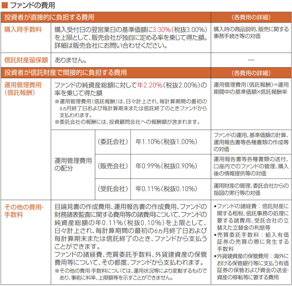 購入手数料は3.3%、毎年の管理費用は年率2.2%、その他手数料もかかります。
