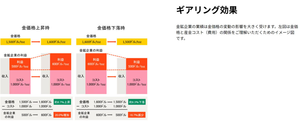 たしかに金鉱山の権益を保有している企業でも埋蔵量やコストは違うでしょうからこのあたりの分析力がモノを言いますね。