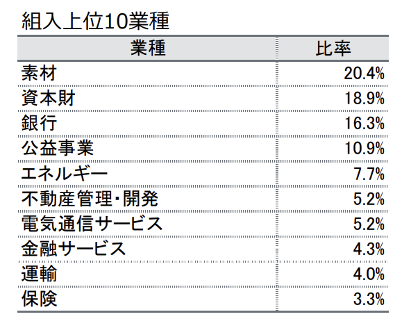 インフラ関連が上位を占める(現在の組入銘柄は76銘柄)と考えておりましたが、銀行の割合が高いようですね。
