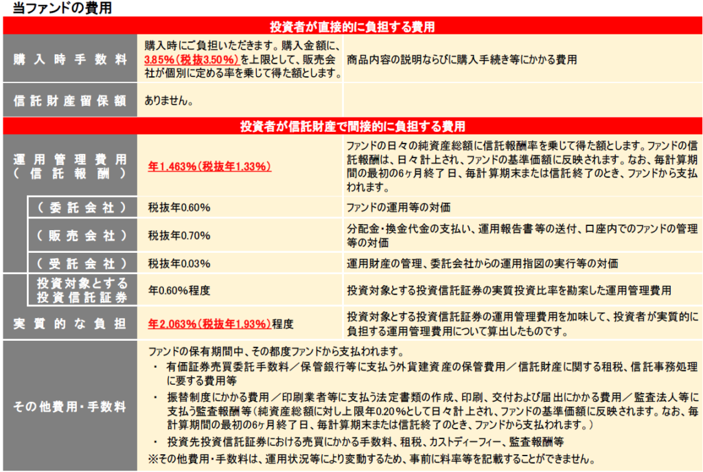 購入手数料は3.85%、毎年の管理費用は年率2.063%、その他手数料もかかります。